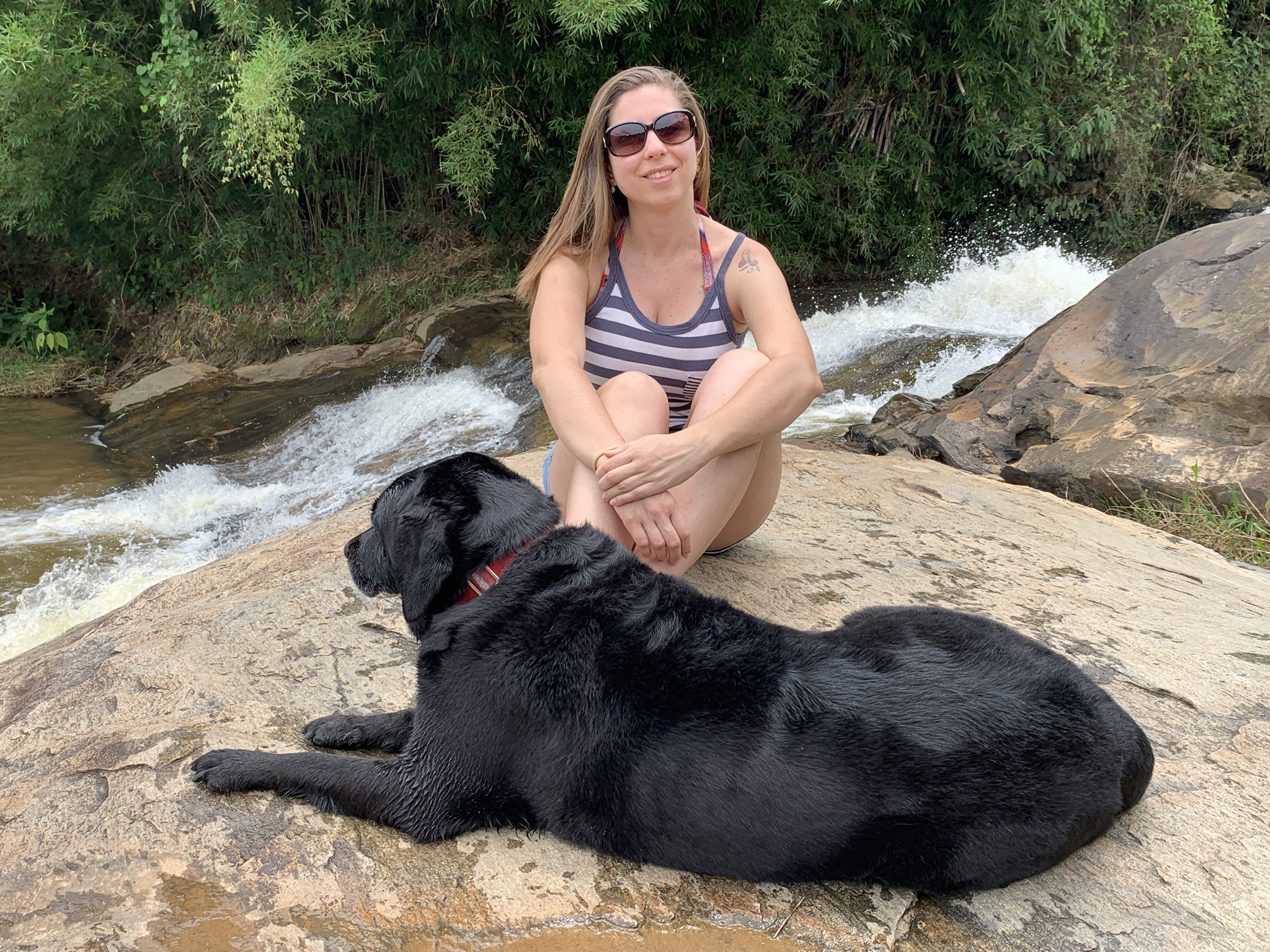Sou receosa com cachoeira, como era perto de uma queda, não me senti segura da Hilary nadar e nem eu, mas me conectei com a natureza através das pedras e energia do lugar!
